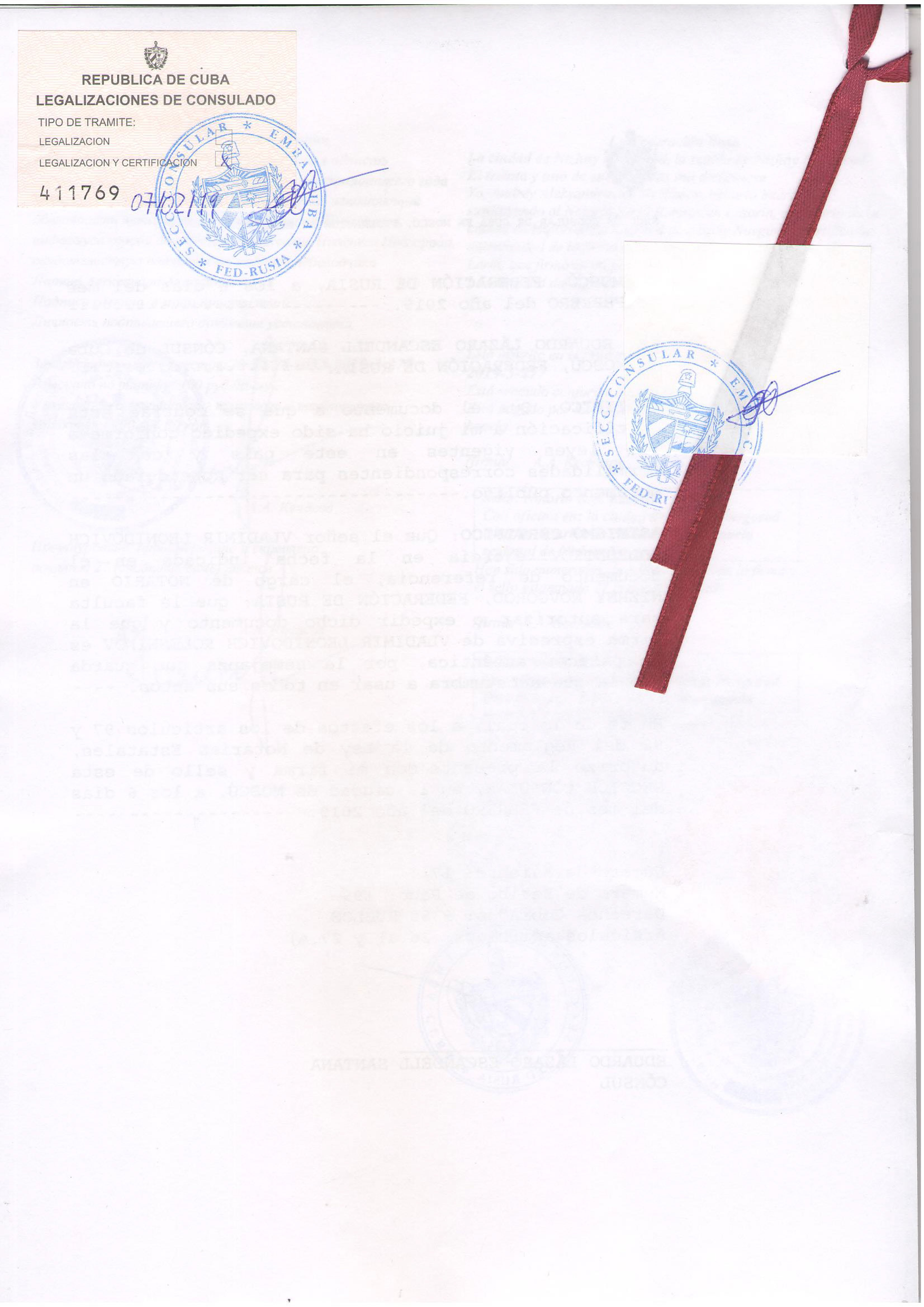 - после этого предоставить документ на легализацию в Посольство Кубы в Москве.